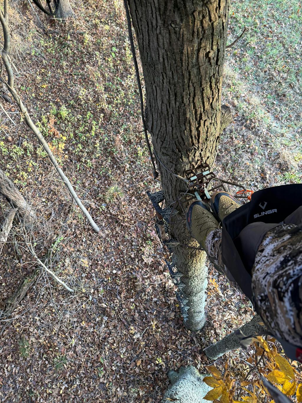 Revolutionize your saddle hunting experience with SlingR™ - the ultimate knee comfort solution. Say goodbye to traditional kneeling methods and embrace unparalleled comfort and versatility. Simply attach our hanging knee sling to your saddle, rest your knees in the padded hammock-like pockets created by straddling the tree, and prepare for a whole new level of stability. Say goodbye to uncomfortable knee pads or loose cushions. Discover the difference of SlingR™.